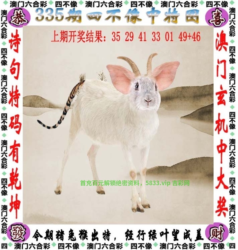 335期〖⑦肖〗:羊猪虎猴鸡蛇